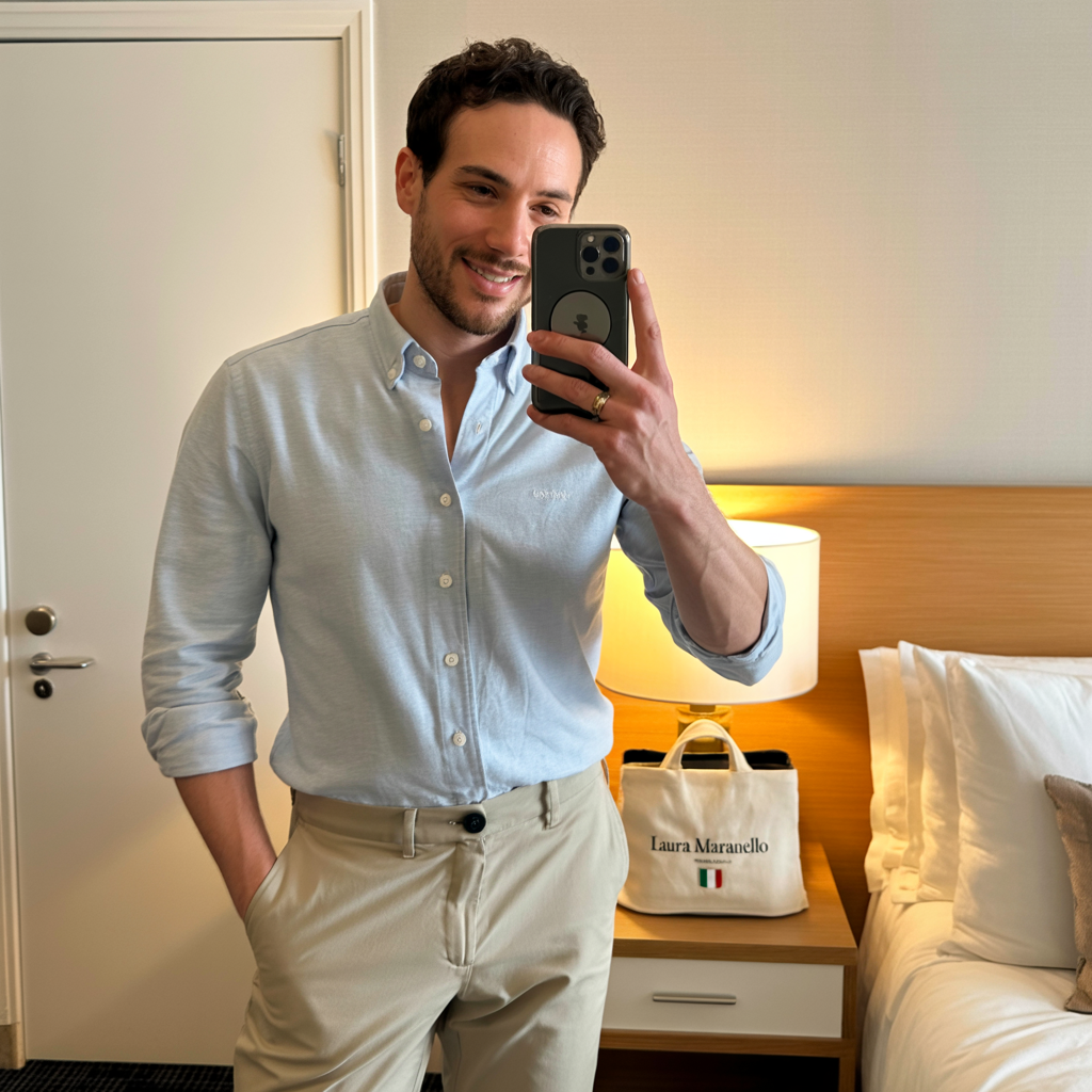 "La camicia in lino Laura Maranello è una scelta di classe. Il comfort è eccezionale e il colore azzurro chiaro si abbina perfettamente ai miei chinos. Un look raffinato e senza sforzo. Lo stile italiano che cercavo."