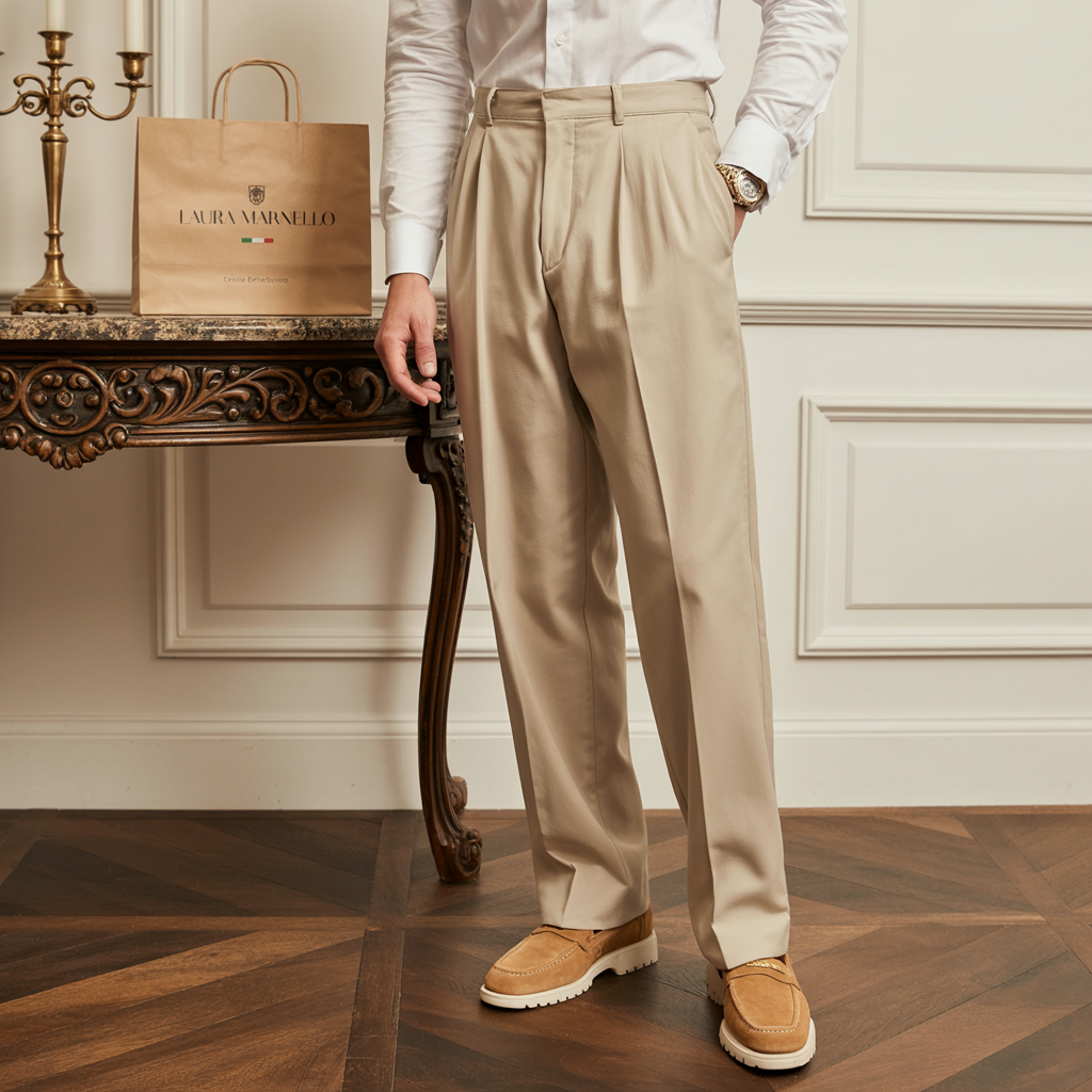 "Questi pantaloni a pieghe Laura Maranello superano ogni aspettativa. Vestibilità ampia ma elegante, il colore beige è sofisticato. Un dettaglio di stile che fa la differenza. Qualità e manifattura eccellenti."