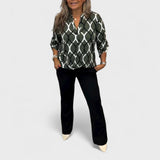 L'elegante camicetta Janny offre il perfetto equilibrio tra eleganza e comfort. Con il suo moderno motivo geometrico e la vestibilità accattivante, questa camicetta è pensata per le donne che affrontano la vita con stile e disinvoltura. Che tu debba andare in ufficio, a pranzo o abbia in programma una giornata all'aperto, Janny si adatta a ogni occasione.