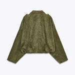 Questa elegante giacca da pilota con maniche a pipistrello combina comfort e stile in modo perfetto. Il morbido materiale in camoscio offre un tocco di lusso, mentre la vestibilità ampia garantisce un look casual e alla moda.