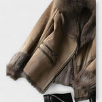 Il morbido colletto in pelliccia aggiunge accoglienza, mentre il materiale in pelle di pecora offre un'ottima isolamento nei giorni freddi. Le pratiche tasche con zip offrono spazio per gli oggetti essenziali, e il taglio moderno e l'alta qualità della lavorazione rendono la giacca un'affermazione di stile.