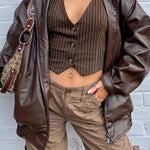 Presentiamo la nostra Giacca Lilli, realizzata in pelle sintetica per un perfetto equilibrio tra stile e funzionalità. Questa giacca presenta un colletto alto con bottone, rendendola perfetta per l'uso quotidiano. Con un'estetica primaverile, autunnale e invernale, si abbina senza sforzo al tuo look, che tu sia fuori per una giornata informale o in fase di stratificazione per il clima più fresco. Eleva la tua collezione con questo pezzo essenziale per questa stagione.