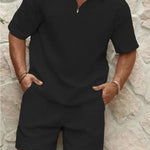 Preparati per l'estate con il set di 2 pezzi per uomini! Questo set elegante è realizzato in una miscela di cotone di alta qualità che ti tiene comodo e alla moda nelle giornate calde. Che tu stia andando in spiaggia o trascorrendo del tempo con gli amici, il set è perfetto per ogni attività estiva. Goditi la stagione rimanendo fresco e alla moda!