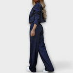 Un elegante completo a strisce è la scelta perfetta per le donne che apprezzano stile e comfort. Realizzato in un materiale leggero e di alta qualità, offre comfort per tutto il giorno. Il completo è composto da un giacchino corto e pantaloni larghi, entrambi decorati con un classico motivo a strisce. Il giacchino ha maniche lunghe e colletto, mentre i pantaloni a vita alta hanno una cintura elastica, che consente una vestibilità ideale per la silhouette.
