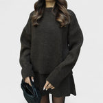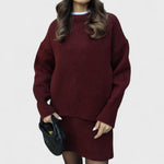 Il set di maglieria perfetto per le giornate più fresche. Il tessuto morbido e caldo, la vestibilità rilassata e la semplicità senza tempo rendono questo set un indispensabile. La felpa a girocollo e i pantaloni abbinati creano un insieme elegante e confortevole, perfetto per rilassarsi a casa o per uscire in città.