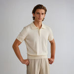 Un omaggio all'eleganza senza sforzo, questo polo a maniche corte è realizzato in un'alta qualità di misto ramie e cotone, offrendo una texture raffinata, traspirante e leggera. Il suo taglio strutturato e la lucentezza discreta lo rendono un elemento imprescindibile del guardaroba maschile.